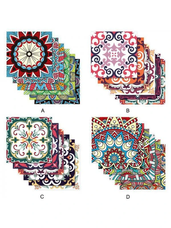 6Pcs Kitchen Bathroom Floor Simulation Wall Tile Waterproof Wallpaper Brick Effect Tile Wall Stickers DIY Home Decor